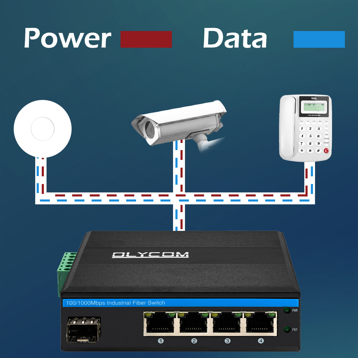 | Nom du produit | Commutateur fibre POE industriel 10/100/1000 Mbps (1F+4TP) |